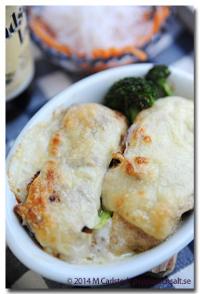 Gör så här:Vispa upp äggen med mjölk eller grädde, hackade örter, salt och svartpeppar. Hetta upp smöret i en stekpanna. Häll smeten i pannan när smöret börjar få färg, sänk sedan värmen. Låt omeletten stå på svag värme tills den stannat på ytan efter cirka 10-15 minuter. Vänd försiktigt omeletten, höj värmen något och låt den få färg även på undersidan.